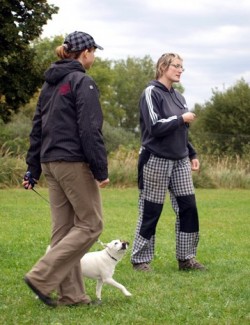 17. 5. 2010 se Oskárek zúčastnil tréninku obedience v Praze u Kristýny Másilkové, která nám svým přístupem vysloveně sedla. Trénink trval od 10 do 14 hodin a přihlášeno bylo 5 týmů, já s Oskarýnem samozřejmě v začátečnících. V podstatě mimo dřívek jsme potrénovali všechny cviky několikrát, otázka je zda vůbec naši šílenou chůzi u nohy (Oskárek čuchal a vůbec mě nesledoval) považovat za obediencovou chůzi :-O Kristýna Oskara velmi chválila že je šikovný a já samozřejmě byla peskovaná za nezvládnutí rychlého klikání-pamlsku-pochvaly (to je můj věčný boj). Nicméně už konečně máme koupený čtverec, dřívka a pořádnou činku takže začínáme řádně pravidelně trénovat.